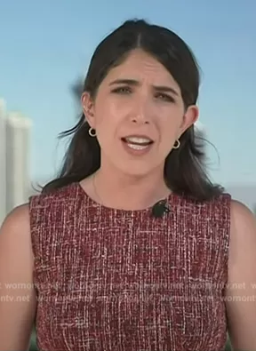on NBC News Daily on NBC was spotted wearing this red sleeveless tweed dress on NBC News Daily on Jun 12 2024's episode. 's Dress is the Loved Red Tweed Sheath Dress Adam Lippes.