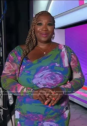 on Today on NBC was spotted wearing this floral print asymmetric dress on Today on Jun 17 2024's episode. 's Dress is the Vera Floral-printed Asymmetric Midi-dress in Green Cobalt Multi by Prabal Gurung . 's Shoes is the Debout Condorapik Red-Sole Water-Print Pumps by Christian Louboutin.
