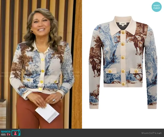 Rebecca Jarvis on Good Morning America on ABC was spotted wearing this beige eyelet top on Good Morning America on Jun 19 2024's episode. Rebecca's Top is the Peplum Short Sleeve Top by RED Valentino.