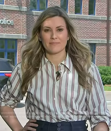 Paige Christa Stripe Poplin Button-Up Shirt worn by Erin McLaughlin on NBC News Daily