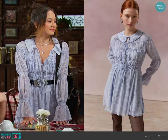 Sophia Choi (played by Madelyn Kientz) on Days of our Lives on Peacock was spotted wearing this blue tie neck smocked dress on Days of our Lives on Jun 21 2024's episode. Sophia (old)'s Dress is the Lonie Smocked Mini Dress by Kimchi Blue . Sophia (old)'s Necklace is the Sloane Layered Necklace in Sapphire Blue / Silver by Free People.