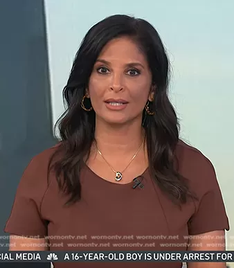 Darlene Rodriguez on Today on NBC was spotted wearing this brown short sleeve seamed dress on Today on Jun 20 2024's episode. Darlene's Dress is the Dukeva Dress by Boss.