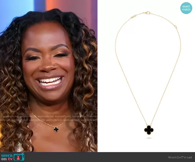 on Good Morning America on ABC was spotted wearing this black and gold clover necklace on Good Morning America on Jun 20 2024's episode. 's Necklace is the Vintage Alhambra Pendant by Van Cleef & Arpels.