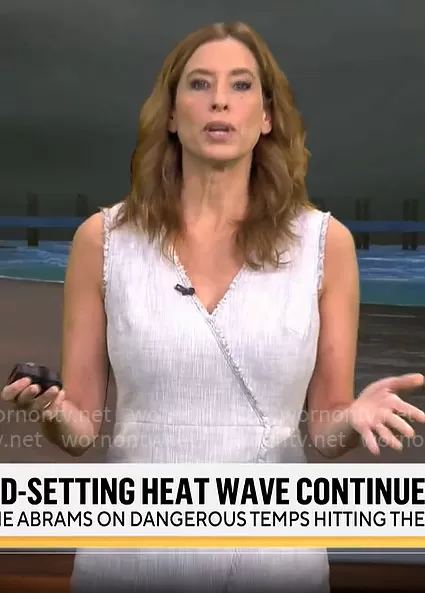 Stephanie Abrams on CBS Mornings on CBS was spotted wearing this Stephanie Abrams’ grey tweed sleeveless wrap dress on CBS Mornings on Jun 20 2024's episode. Stephanie's Dress is the Tailored Slub Suiting Dress by Rebecca Taylor .