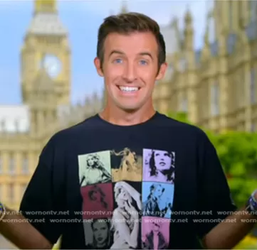 on Good Morning America on ABC was spotted wearing this Will Ganss’ black Taylor Swift print tee on Good Morning America on Jun 24 2024's episode. 's Shirt is the The Eras II Tour Black T-Shirt by Taylor Swift Official Store.