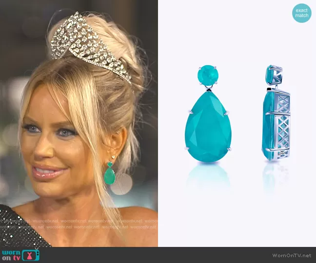 Caroline Stanbury (played by Caroline Stanbury) on The Real Housewives of Dubai on BravoTV was spotted wearing this blue teardrop earrings on The Real Housewives of Dubai on episode 'Drama Queens' (2x04) in Jun 2024. Caroline's Earrings is the Maldives Large Pear Paraiba Drop Earrings by Gemma Azzurro.