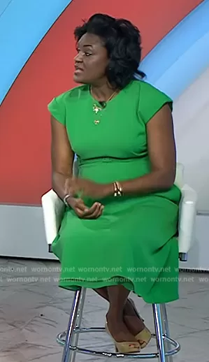 on Today on NBC was spotted wearing this green dress on Today on Jun 26 2024's episode. 's Dress is the Meera Belted Midi Dress by Hobbs London.