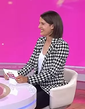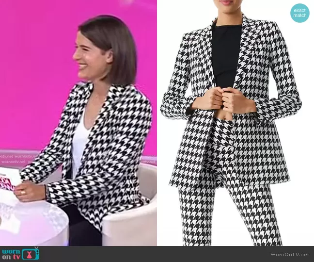 on Today on NBC was spotted wearing this houndstooth blazer on Today on Jun 27 2024's episode. 's Jacket is the Breann Long Fitted Houndstooth Print Blazer by Alice + Olivia.