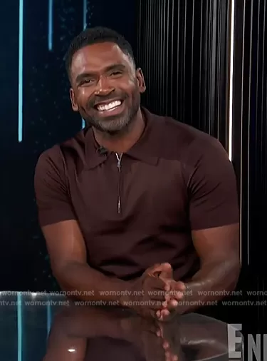 Justin Sylvester on E! News on E! was spotted wearing this brown zip polo on E! News on Jun 28 2024's episode. Justin's Shirt is the Pablo Zip Polo by Sandro.