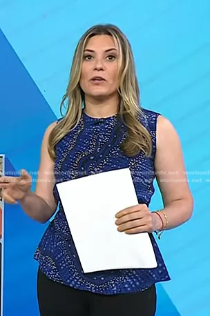 on Today on NBC was spotted wearing this blue printed peplum top on Today on Jul 01 2024's episode. 's Top is the Mckenna silk Top in Indigo by Altuzarra.