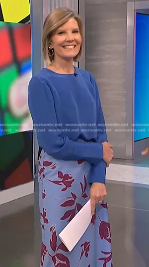 Kate Snow on NBC News Daily on NBC was spotted wearing this blue floral skirt on NBC News Daily on Sep 04 2025's episode. Kate's Skirt is the Floral Midi Skirt by Thakoon Collective.