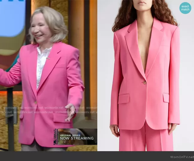 on Live with Kelly and Mark on Disney ABC Home Entertainment was spotted wearing this pink blazer on Live with Kelly and Mark on Jul 03 2024's episode. 's Blazer is the Iconic Wool Stretch Gabardine Blazer by Stella McCartney.