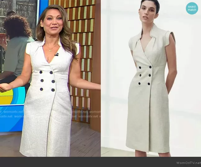 Ginger Zee on Good Morning America on ABC was spotted wearing this white double breasted dress on Good Morning America on Jul 03 2024's episode. Ginger's Dress is the Sudbury Dress by The Fold London.