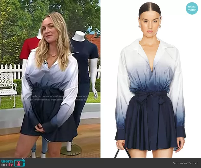 on Today on NBC was spotted wearing this dip dye shirtdress on Today on Jul 03 2024's episode. 's Dress is the Super Oversized Boyfriend Shirt Flared Mini Dress by Norma Kamali . 's Shoes is the Wicker Heel Sandals by Stuart Weitzman.