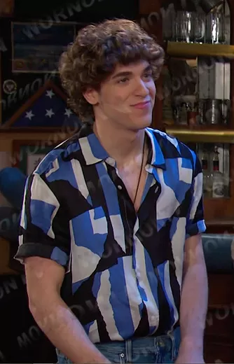 Aaron Greene (played by Louis Tomeo) on Days of our Lives on Peacock was spotted wearing this black and blue abstract print shirt on Days of our Lives on Jul 05 2024's episode. 's Shirt is the Abstract Print Shirt by Zara.