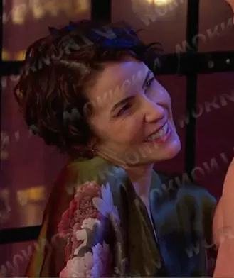 Sarah Horton (played by Linsey Godfrey) on Days of our Lives on Peacock was spotted wearing this green floral robe on Days of our Lives on Jul 05 2024's episode. Sarah's Robe is the Silk Keina Kimono Robe in Olive by Kim + Ono.