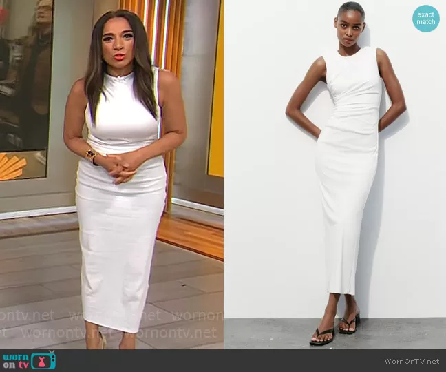 Zara Draped Midi Dress in White worn by Michelle Miller on CBS Mornings
