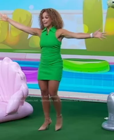 on Good Morning America on ABC was spotted wearing this green sleeveless polo dress on Good Morning America on Jul 05 2024's episode. 's Dress is the Zipper shirt dress by Mango.