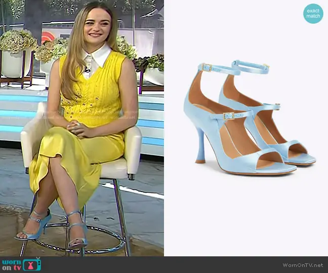 on Today on NBC was spotted wearing this blue satin sandals on Today on Jul 09 2024's episode. 's Shoes is the Riley 90 Heeled Sandals in Baby Blue Satin by Malone Souliers . 's Vest is the Fall 2024 Collection by Des Phemmes .