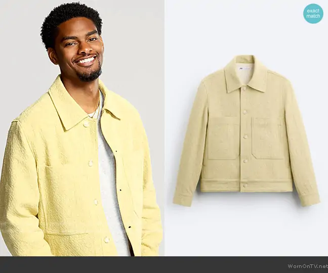 JR (played by Sylvester Powell) on All American Homecoming on CWTV was spotted wearing this yellow knit overshirt on All American Homecoming on episode 'Survivor' (3x13) in Oct 2024. JR's Jacket is the Textured Weave Overshirt by Zara.