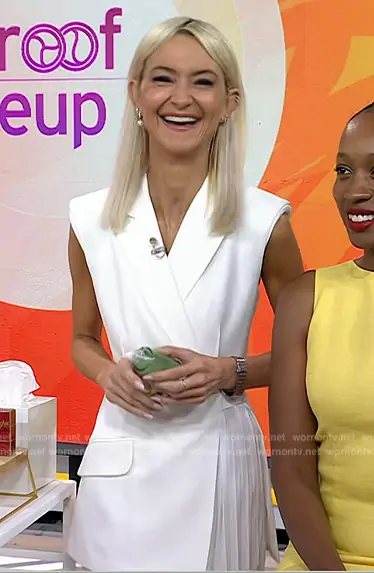 on Today on NBC was spotted wearing this Zanna Roberts’ white sleeveless blazer dress on Today on Jul 10 2024's episode. 's Dress is the Helena Dress by Simkhai.