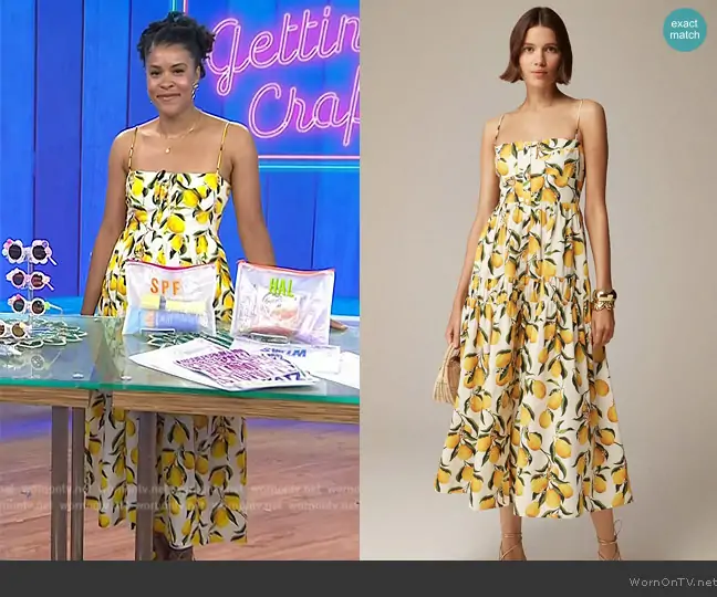 on Today on NBC was spotted wearing this lemon print dress on Today on Jul 10 2024's episode. 's Dress is the A-line midi dress in limoncello by J. Crew.