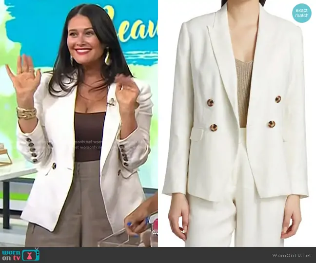 Elie Tahari Linen Double Breasted Blazer in Soft white worn by Ashlee Glazer on Today