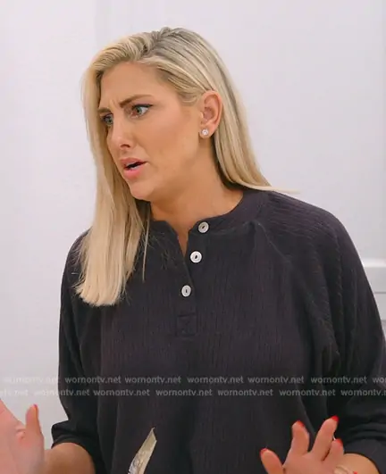 Gina Kirschenheiter on The Real Housewives of Orange County on Bravo was spotted wearing this black knit henley on The Real Housewives of Orange County on episode 'Exes and OCs' (18x01) in Jul 2024. Gina's Sweater is the Contrast Stitch Henley by Nia the Brand.