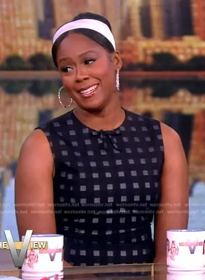 on The View on ABC was spotted wearing this black check print mini dress on The View on Jul 15 2024's episode. 's Dress is the Sleeveless Slim Fit Dress by Shushu / Tong.
