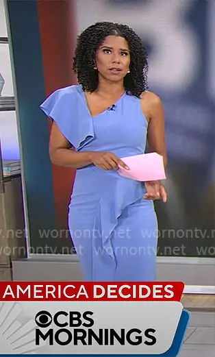 Adriana Diaz on CBS Mornings on CBS was spotted wearing this blue asymmetric dress on CBS Mornings on Aug 12 2025's episode. Adriana's Dress is the Shara Dress by Parker .