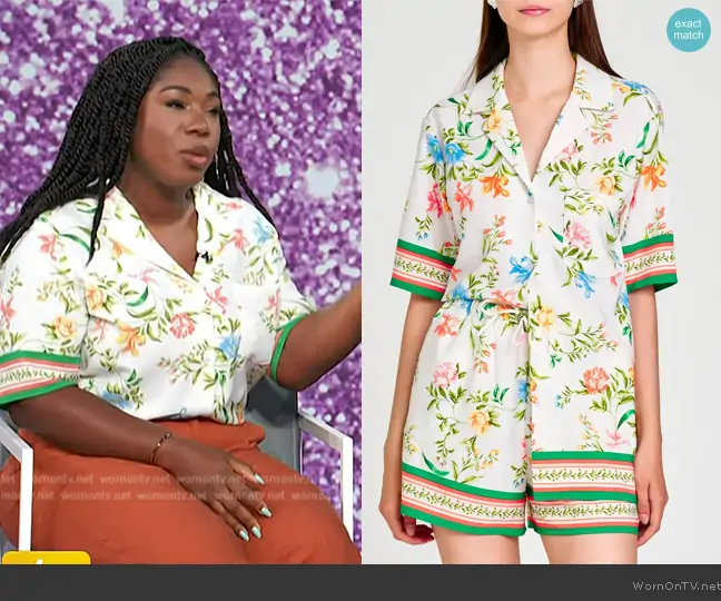 on Access Hollywood on NBC was spotted wearing this floral print shirt on Access Hollywood on Jul 17 2024's episode. 's Top is the Bowler Shirt by WayF.