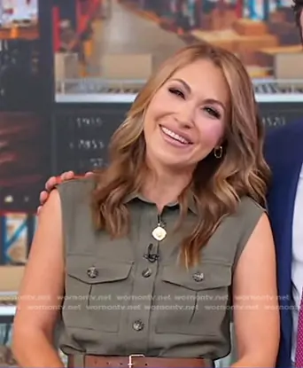 Lori Bergamotto on Good Morning America on ABC was spotted wearing this khaki green belted dress on Good Morning America on Jul 17 2024's episode. Lori's Dress is the Belted Cargo Dress in Dark khaki Green by H&M.