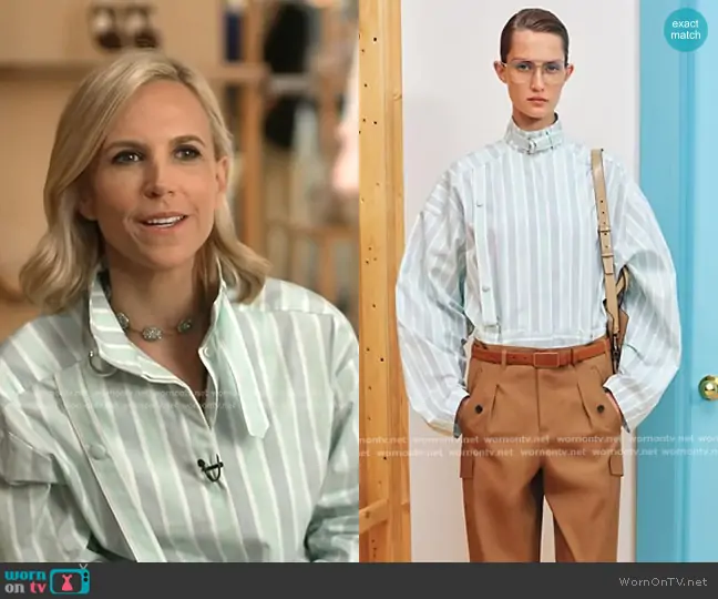 on Good Morning America on ABC was spotted wearing this striped shirt on Good Morning America on Jul 17 2024's episode. 's Top is the Resort 2025 Collection by Tory Burch.