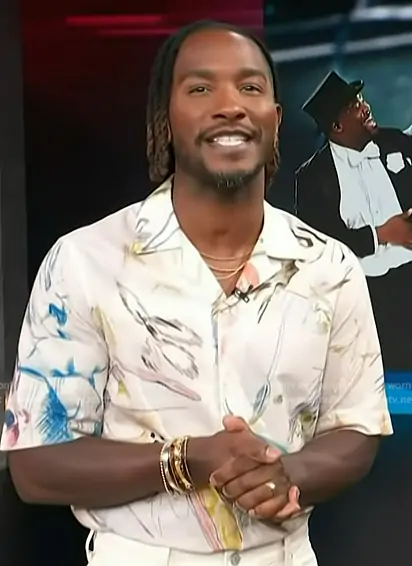 Scott Evans on Access Hollywood on NBC was spotted wearing this abstract print shirt on Access Hollywood on Jul 18 2024's episode. Scott's Shirt is the Abstract-print cotton shirt by Paul Smith.