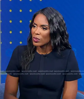 on Good Morning America on ABC was spotted wearing this navy peplum top on Good Morning America on Jul 18 2024's episode. 's Top is the Belted Crepe Knit Jacket in navy by Scanlan Theodore.