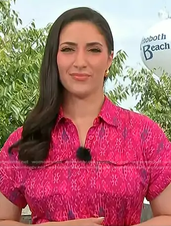 on NBC News Daily on NBC was spotted wearing this pink printed shirtdress on NBC News Daily on Jul 18 2024's episode. 's Dress is the Seagill Dress by Lauren Ralph Lauren.