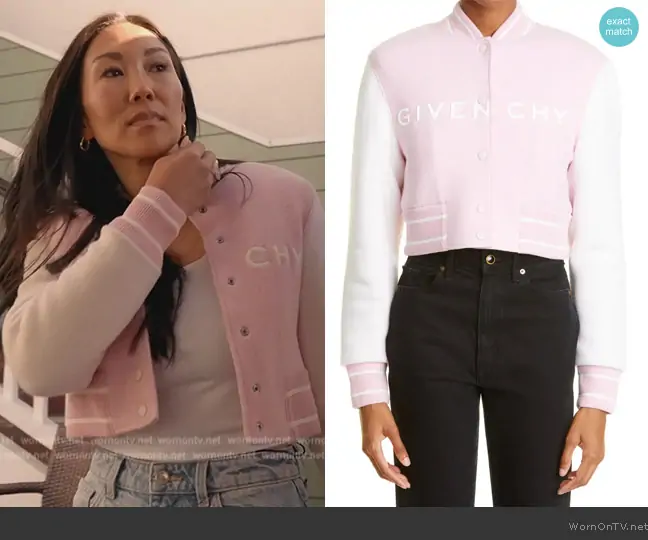Katie Ginella on The Real Housewives of Orange County on Bravo was spotted wearing this pink and white bomber jacket on The Real Housewives of Orange County on episode 'Rent and Reputations' (18x02) in Jul 2024. Katie's Jacket is the Disney x Givenchy Crop Virgin Wool Bomber Jacket by Givenchy.