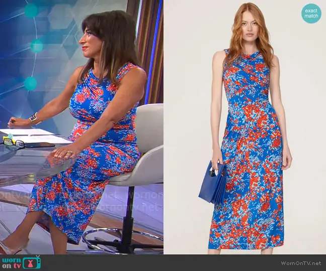 Atlein Collective Ruched Floral Midi Dress worn by Michelle Miller on CBS Mornings