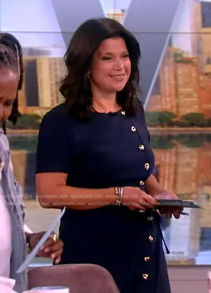 Ana Navarro on The View on ABC was spotted wearing this blue button detail dress on The View on Jul 22 2024's episode. Ana's Dress is the Rosa Asymmetric Button Front Dress by Altuzarra.
