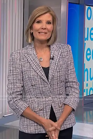 Veronica Beard Ryland Dickey Jacket in Blue Multi worn by Kate Snow on NBC News Daily