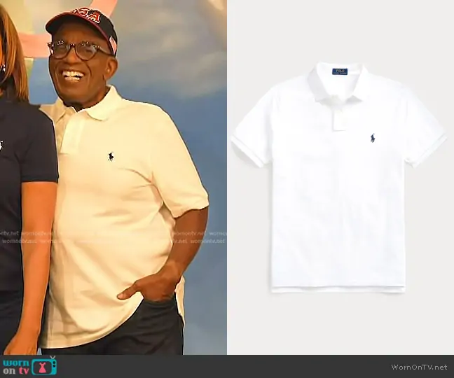 on Today on NBC was spotted wearing this white polo shirt and baseball cap on Today on Jul 23 2024's episode. 's Shirt is the custom ordered by Polo Ralph Lauren . 's Hat is the Team USA Twill Ball Cap in Navy by Polo Ralph Lauren.