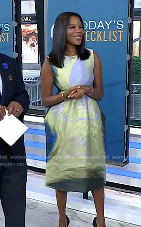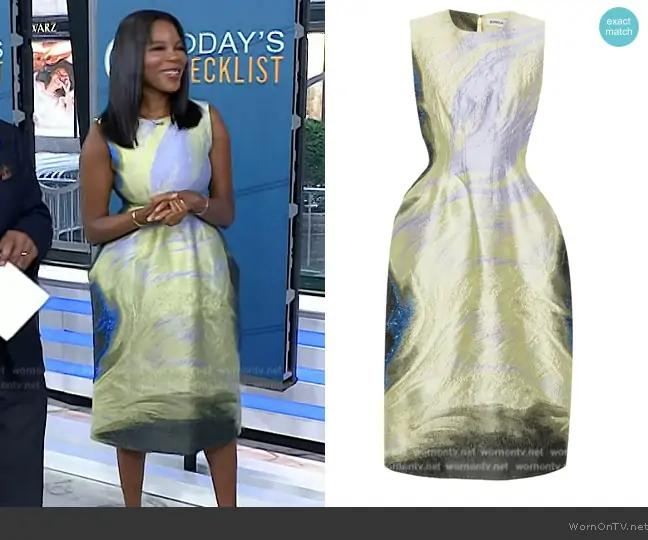 on Today on NBC was spotted wearing this abstract textured dress on Today on Jul 24 2024's episode. 's Dress is the Eli midi dress by Simkhai.