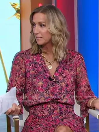 Lara Spencer on Good Morning America on ABC was spotted wearing this floral print metallic dress on Good Morning America on Sep 04 2024's episode. Lara's Dress is the Silvie Dress by A.L.C..