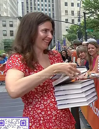 on Today on NBC was spotted wearing this red floral dress on Today on Jul 25 2024's episode. 's Dress is the Evie Midi Dress in Amelie Floral Red by Rixo.