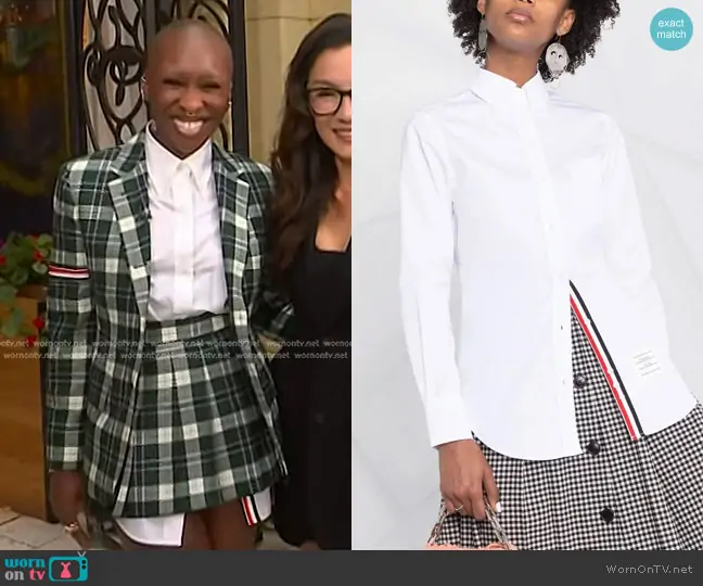 on Today on NBC was spotted wearing this green plaid blazer and pleated skirt on Today on Jul 26 2024's episode. 's Top is the Logo-patch Cotton Shirt by Thom Browne . 's Jacket is the Tartan Single-breasted Blazer by Thom Browne . 's Skirt is the School Uniform Twill Mini Skirt by Thom Browne.