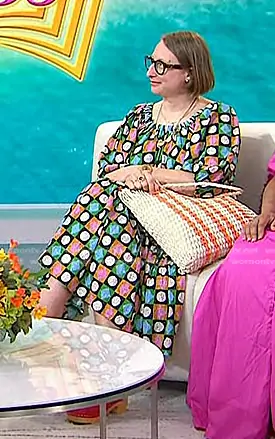 on Today on NBC was spotted wearing this polka dot dress on Today on Jul 26 2024's episode. 's Dress is the Polka Dot Print Midi Dress by La DoubleJ.