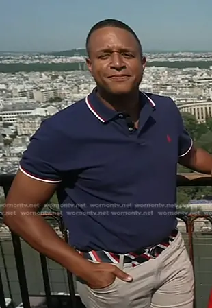on Today on NBC was spotted wearing this navy polo shirt on Today on Jul 29 2024's episode. 's Shirt is the Solid Cotton Polo Shirt in Navy by Polo Ralph Lauren . 's Belt is the Team Usa Striped Belt In Red/white/blue by Polo Ralph Lauren.