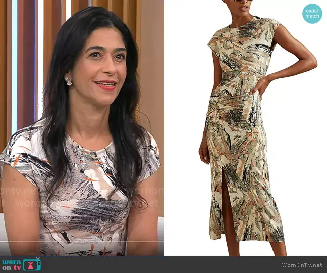 Reiss Lennia Printed Jersey Midi Dress worn by Taraneh Shirazian on CBS Mornings