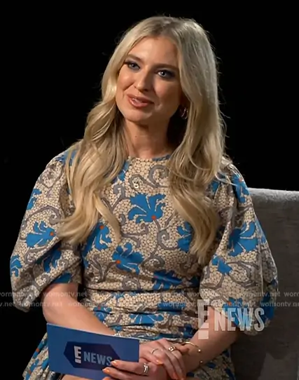 on E! News on E! was spotted wearing this floral print dress on E! News on Jul 26 2024's episode. 's Dress is the Pia Mini Dress in Beige Mosaic Bloom by Rhode.
