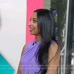 Dana Jacobson on CBS Mornings on CBS was spotted wearing this purple cross neck top on CBS Mornings on Aug 24 2025's episode. Dana's Top is the Sleeveless Twist Knit in Grape by Elie Tahari .